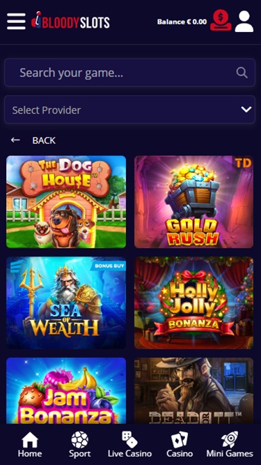 除了真錢老虎機、桌上遊戲、真人荷官遊戲和即時崩潰遊戲外,Bloody Slots 還設有獨立的體育博彩專區,您可以在這裡投注所有熱門體育賽事和電競比賽,無論是在賽前還是比賽進行中。這個體育博彩平台還提供虛擬體育,讓您可以投注各種體育項目的模擬比賽。