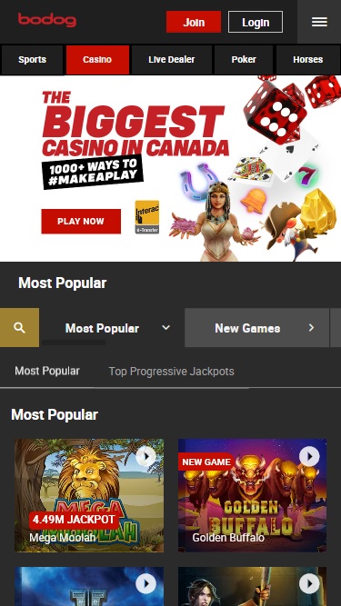 Bodog 的賭場遊戲