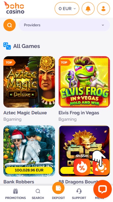 BOHO 的促銷板塊提供了一些頗具吸引力的獎金。新註冊會員可享有豐厚的迎新禮包,其中包含前三次存款的獎金。
