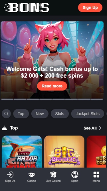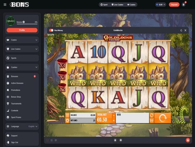 該賭場主要針對來自日本、韓國和印度的玩家,並由多家 iGaming 巨頭提供支援。 “Bons”代表“體育博彩”,但其賭場提供的服務相當令人印象深刻。玩家可以從超過 4000 款線上老虎機遊戲的龐大遊戲庫中試玩。此外,玩家還可以享受同樣精彩的真人荷官和賭場遊戲。