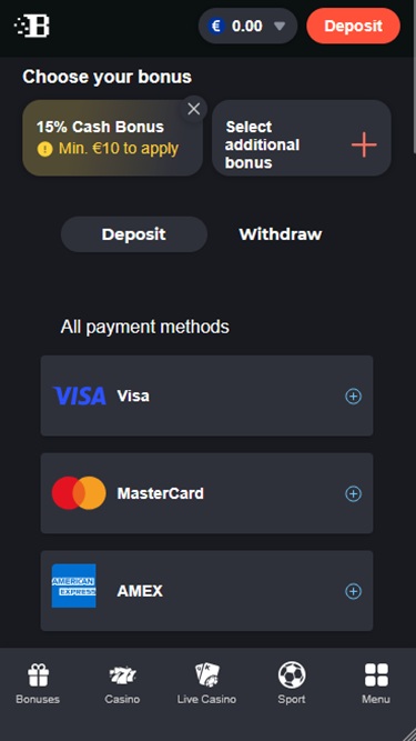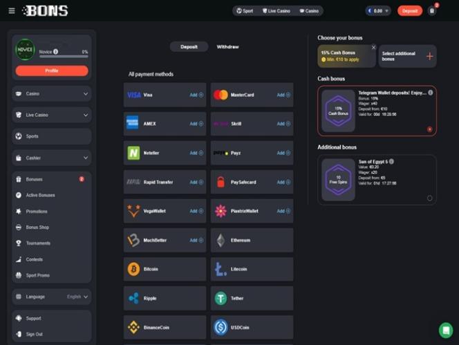 賭場出納員支援多種支付方式,包括加密貨幣,因此無論您屬於哪個賭博管轄區,向 Bons Casino 存款或從 Bons Casino 提款都不會有任何麻煩。