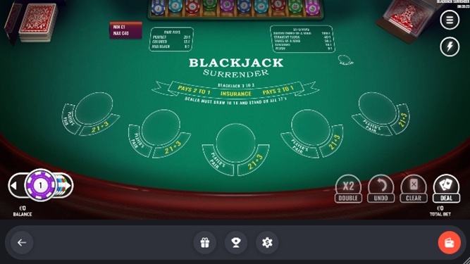 軟17點 | 分牌之後加倍賭注 | 加倍賭注 | 分牌次數 | Aces對子再分牌 | 分牌Aces對子再補牌 | 偷看牌 | 投降 | 回報率 | Decks | 即時遊戲 |