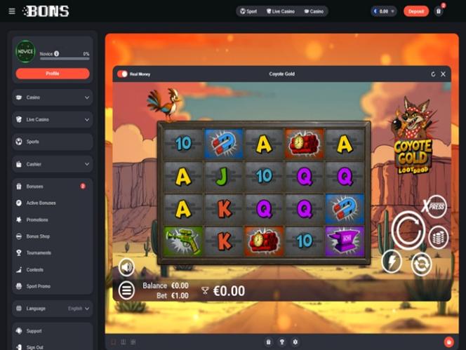 如前所述,Bons Casino 提供豐富的老虎機遊戲選擇。老虎機庫會定期更新,玩家可以隨時嘗試新推出的老虎機遊戲。此外,Bons Casino 還收錄了經典遊戲,因此,如果您追求經典拉斯維加斯風格的娛樂體驗,那麼這裡就是您的理想之選。