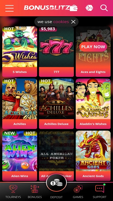 說到 Bonus Blitz Casino,很遺憾,我們無法說它有多款遊戲可供選擇。雖然有一些來自Realtime Gaming和 Microgaming 等熱門軟體供應商的遊戲,但你確實能感受到遊戲的匱乏,尤其是因為沒有真人荷官賭桌。