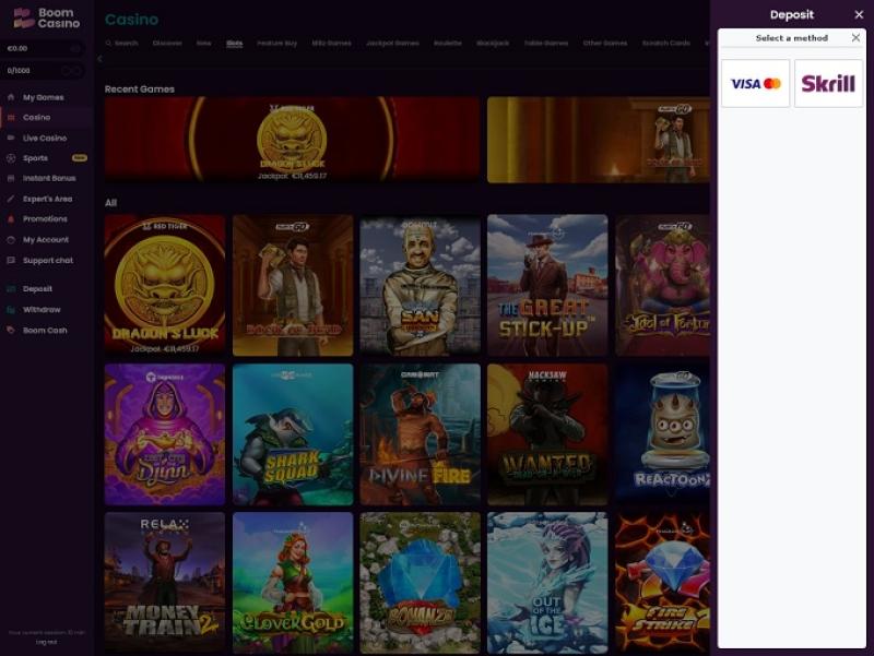 Boom Casino 由 Microgaming, Amatic Industries, Big Time Gaming, iSoftBet, Novomatic, Oryx, Play'n GO, playson, Quickspin, Relax Gaming, Yggdrasil, Endorphina, Wazdan, Booming Games, Stakelogic, Pragmatic Play, Felt Gaming, Red Rake Gaming, Fantasma Games, FunFair, Kalamba, Spin Games, Skywind, Triple Edge Studios, Northern Lights Gaming, Evoplay, Stormcraft Studios, Switch Studios, Electric Elephant Games, Pocket Games Soft, Bulletproof Games, All41 Studios, Gluck Games, Gameburger Studios, Pulse 8 Studios, Neon Valley Studios, Golden Rock Studios, Spearhead Studios, Swintt, SpinPlay Games, Mancala Gaming, HungryBear Gaming, Real Dealer Studios, Blue Guru Games, On Air Entertainment, PureRNG, Buck Stakes Entertainment, Caleta Gaming, Games Global, bluberi, Greentube, Leander Games, Gamomat, Bally Wulff, Old Skool Studios, Reflex Gaming, Storm Gaming Technology, Wild Streak Gaming, Slingshot Studios, Fortune Factory Studios, Jade Rabbit Gaming, RubyPlay, 4ThePlayer, AvatarUX, Gamevy, Crazy Tooth Studio, High 5 Games, ReelPlay, Japan Technicals Games, Alchemy Gaming, BB Games, Snowborn Games, Boomerang Studios, Hacksaw Gaming, Max Win Gaming, Gold Coin Studios, Bang Bang Games, Arcadem, SilverBack Gaming, Peter And Sons, Eurostar Studios, Aurum Signature Studios, Onlyplay, Armadillo Studios, FlipLuck, Area Vegas, RAW iGaming, Bombay Live, 3 Oaks Gaming, Wishbone Games, Spribe, Circular Arrow, Print Studios, Gaming Corps, Four Leaf Gaming, Nailed It! Games, Atomic Slot Lab, Neko Games, Reel Kingdom, Oros Gaming, Givme Games, JVL and Indigo Magic提供支持,其遊戲採用引人入勝的網頁版形式。網站導航便捷,相容於桌面和行動平台,讓您無論身在何處,只要有網路連接,即可暢玩。