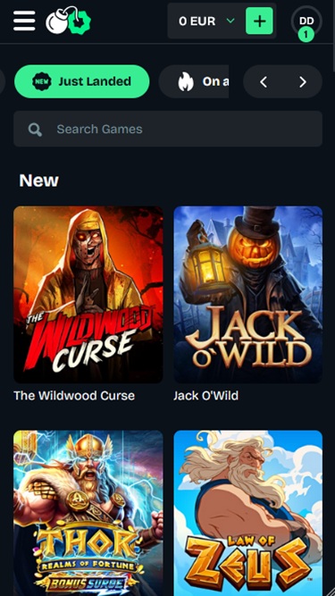 進入賭場後,您將能夠瀏覽頁面頂部的幾個不同的遊戲部分,為了使操作更加方便,賭場還提供了幾個有用的工具,如搜尋欄、「上次玩過」和「我的收藏夾」標籤。