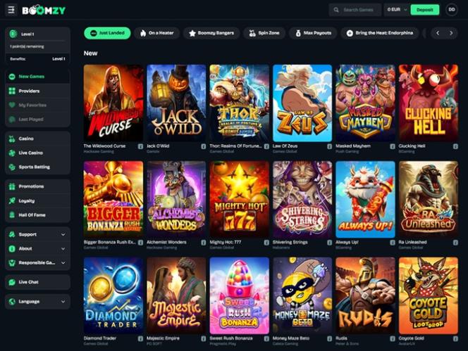 Boomzy Casino擁有數千種令人興奮的遊戲,由一些備受尊敬的 iGaming 行業巨頭提供,例如 Evolution Gaming、 Relax Gaming 、Nolimit City、Endorphina、Hacksaw Gaming 和 Pragmatic Play 等等。