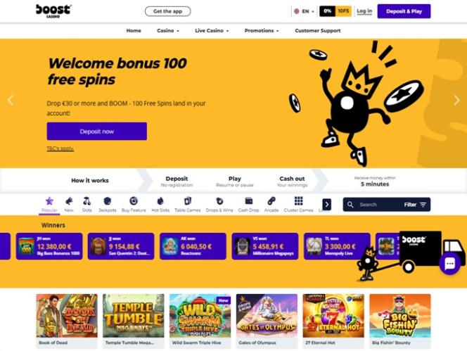 Boost Casino 擁有數量令人滿意的視訊老虎機、桌上遊戲和真人荷官遊戲,提供相當數量的累積獎金遊戲,再加上相當豐厚的歡迎獎金,是一家值得一試的線上賭場。