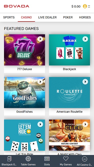 娛樂選項遠不止這些,Bovada 賭場還提供精彩的體育項目。消費者可以盡情享受各種運動賽事,例如足球、籃球、足球、冰上曲棍球、網球、拳擊、橄欖球聯盟、虛擬體育等等。此外,玩家還可以選擇 Parx Racing、Mahoning Valley、Fair Grounds 等知名賽馬場進行投注。