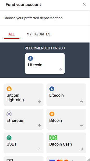 營運商深知支付的靈活性和效率備受青睞,因此在收銀台提供了多種銀行支付方式,包括加密貨幣。 比特幣、比特幣現金、萊特幣、以太幣、美元泰達幣、 快遞支票、銀行電匯和代金券只是部分支援的提款方式。