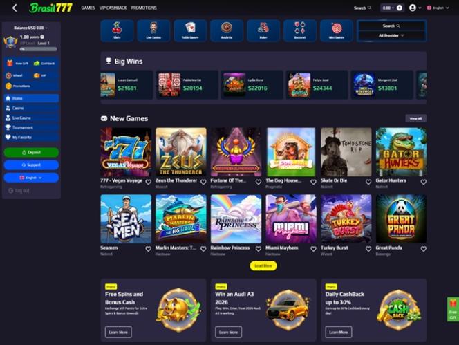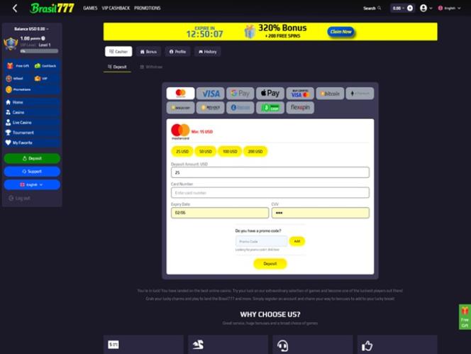 Brasil777是一家現代化的線上賭場,主要針對巴西玩家,提供種類繁多的賭場遊戲,包括線上老虎機、真人荷官遊戲、即時遊戲和桌上遊戲。此外,它還提供豐富的促銷活動、獎金和錦標賽供玩家參與,並接受傳統和現代加密貨幣支付方式。