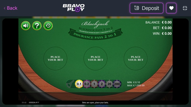 BravoPlay Casino Blackjack (BetSoft)展開