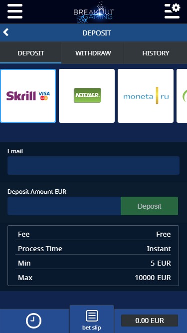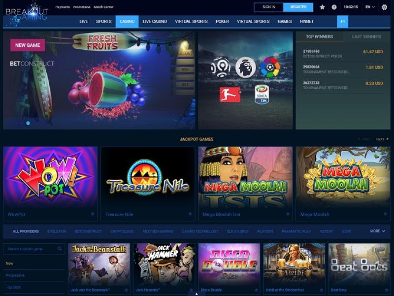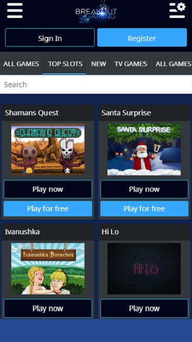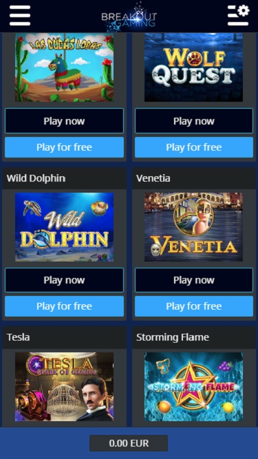 Breakout Gaming 由 Net Entertainment, 1x2gaming, ELK Studios, Evolution Gaming, iSoftBet, playson, Quickspin, WM, Endorphina, Wazdan, GameArt, Booming Games, BetConstruct, Pragmatic Play, ZEUS Services, Wizard Games, CT Interactive, NextGen, Pariplay, iGaming2go, Genii and Mr Slotty提供支持,其賭場遊戲透過基於網頁的即時遊戲平台提供,可直接透過您的網路瀏覽器載入遊戲。該賭場還支援行動端遊戲,這意味著您可以在智慧型手機或平板電腦上暢玩。