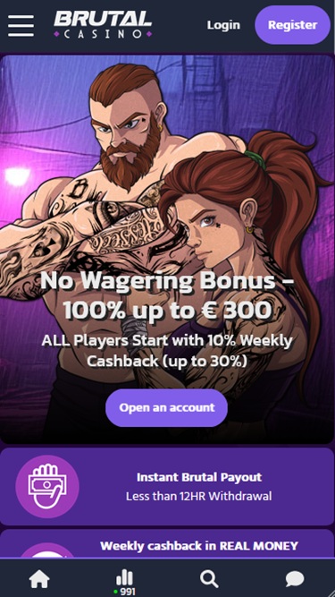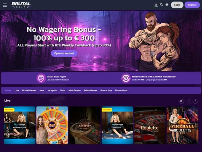 Brutal Casino 擁有豐富的遊戲庫,並提供豐厚的會員方案和優質的促銷方案。乍一看,這是一個前景光明的線上博彩平台,我們很想更深入地探索它。
