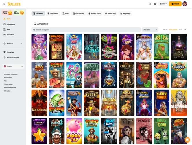 Bulletz 最主要的類別是線上老虎機。業者提供超過四千款老虎機遊戲,玩家可以嘗試包括 Megaways、Bonus Buys 等頂級遊戲。