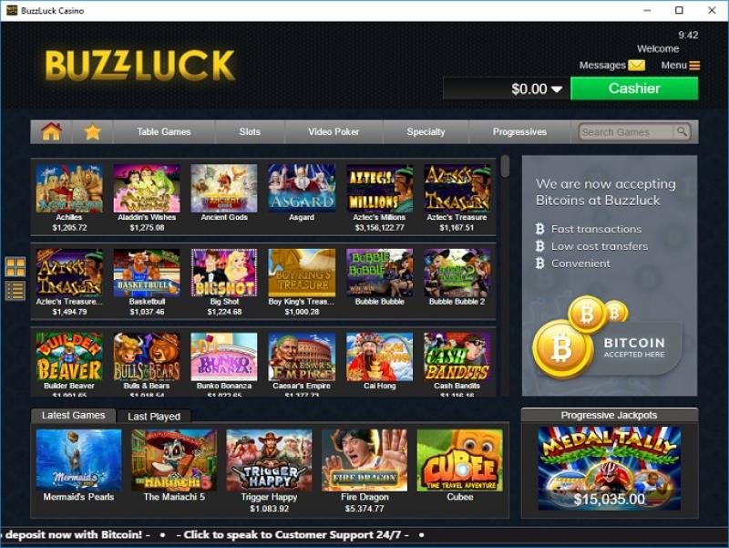 Buzzluck 賭場由 Real Time Gaming 旗下子公司 Real Time Gaming提供支援。由於即時遊戲平台尚未開發,賭場遊戲略有限制,玩家需要下載賭場軟體才能玩。