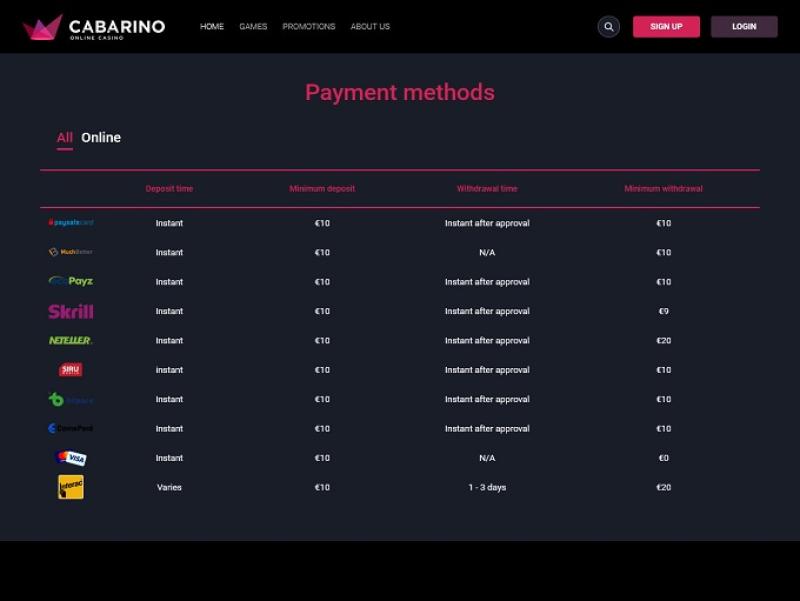 該網站響應迅速,這意味著無論設備螢幕尺寸或類型如何,玩家都能流暢地享受自己喜愛的內容。另一方面,值得一提的是,遊戲縮圖內容需要優化以適應框架,因為許多情況下遊戲標題並不清晰可見,應該放在更合適的位置。除此之外,Cabarino Casino 介面友好,優化程度也很高。