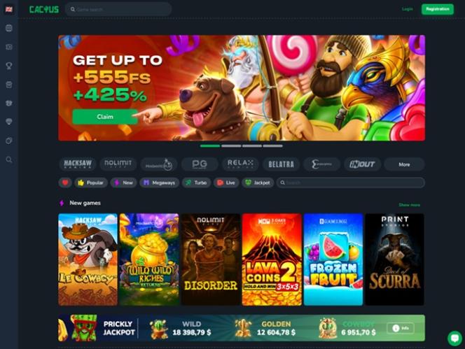 在 Cactus Casino,您可以享受琳瑯滿目的賭場遊戲和軟體供應商。該博彩網站已獲得超過 80 家獨立軟體開發商的授權,其中大多數均位列業內頂尖,並以只提供最高品質的遊戲而聞名。