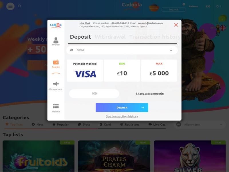 Cadoola 賭場的銀行系統非常完善,支援 Visa、MasterCard、Skrill、Neteller、Zimpler、EcoPayz、比特幣等多種支付方式。網站會根據您的玩家等級設定不同的提款限額。使用電子錢包或比特幣付款幾乎可以即時到賬,而使用其他付款方式則需要更長時間才能到賬。