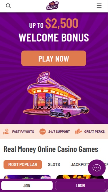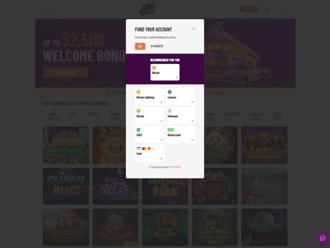 Café Casino 是一家成立於 2016 年的線上博弈網站。 Café Casino 位於卡納瓦克 (Kahnawake) 管轄範圍之外,由 Betting Partners 經營,該公司還經營 Bovada 和 Slots.lv,這兩個網站都深受玩家和聯盟會員的好評。 Café Casino 擁有一套優秀的軟體和完善的銀行服務,是美國玩家的優秀博彩網站。