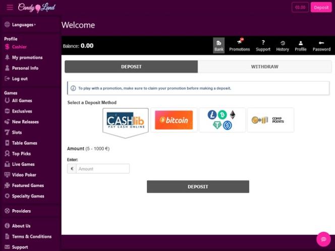 與 CandyLand Casino 合作的一些線上賭場軟體供應商包括 BetSoft、Rival 和 Dragon Gaming,它們提供跨平台優化的內容,可在所有可用裝置(桌上型電腦和行動裝置)上完美載入。