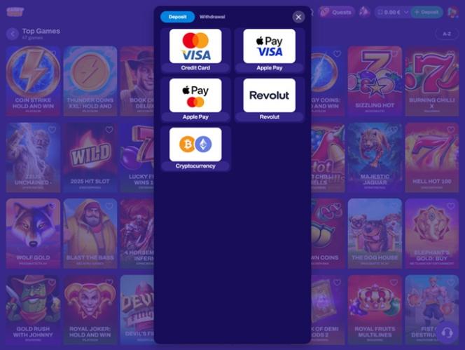 玩家一眼就能看出,這家線上賭場最大的優勢在於其極其豐富的遊戲庫,其中包含數千款涵蓋眾多遊戲類型的獨特遊戲,包括線上老虎機、即時遊戲、桌面遊戲和真人荷官遊戲。這裡遊戲種類繁多,風格多樣,您總能找到符合自己口味的遊戲。