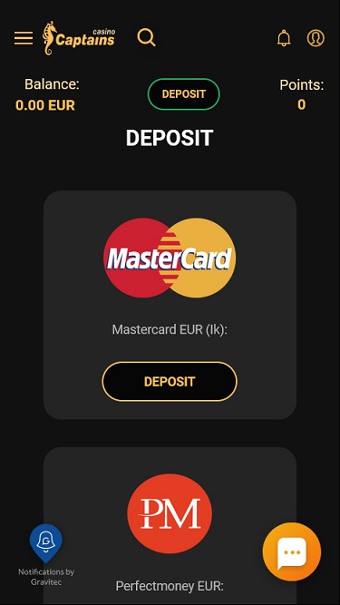 Banking銀⾏業務選項 的 Captainsbet Casino