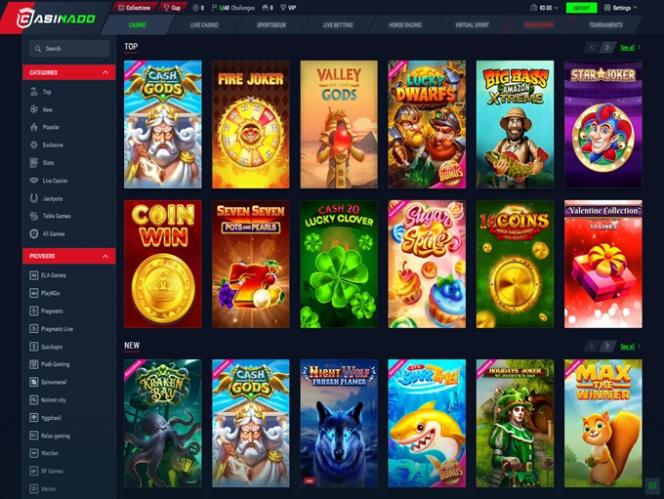 線上賭博因精彩的老虎機遊戲(例如累積獎金和額外贏錢機會)而變得更加刺激,我們相信熱情的賭場玩家一定會喜歡這個板塊。以下是Casinado Casino玩家可以期待的遊戲:Sunny Coin 2 Hold the Spin、Juicy Win Hold the Spin、Triton's Realm、Buffalo Trail、Big Joker、Jackpot Raiders、Purple Fruits…