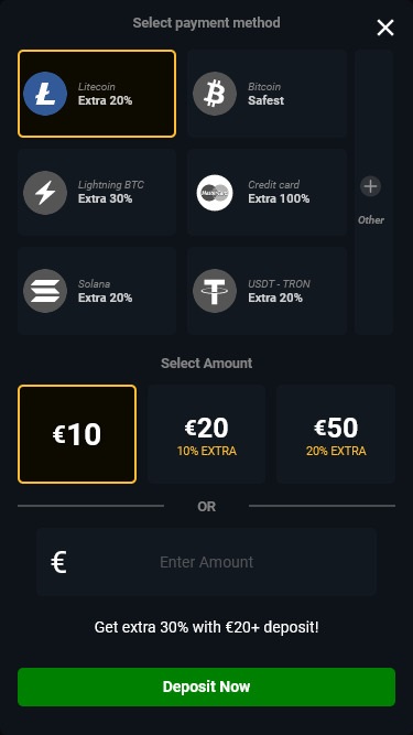 由於該賭場面向美國用戶,因此銀行系統略有限制,這也是意料之中的。不過,該網站接受比特幣,方便即時提款和存款,但其他方式可能需要更長。需要注意的是,每週獎金提款限額為 4,000 美元。