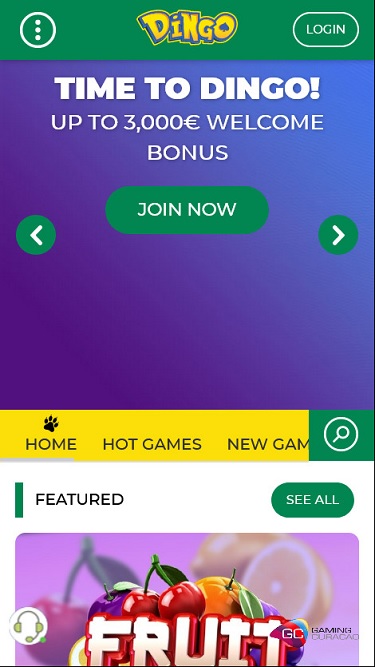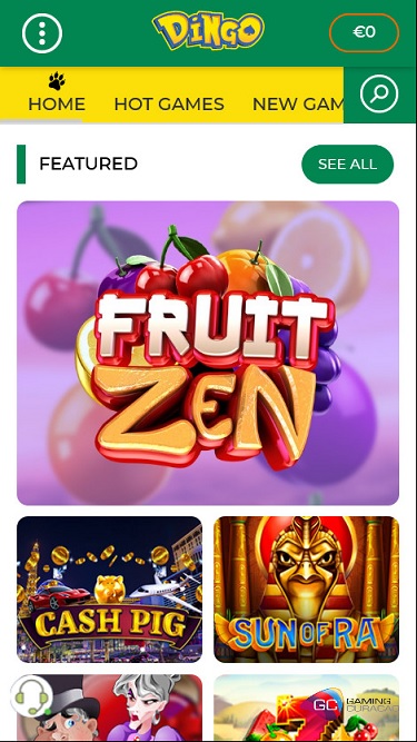 Casino Dingo 由 Microgaming, BetSoft, 1x2gaming, Big Time Gaming, ELK Studios, Evolution Gaming, Ezugi, Habanero Systems, playson, Rabcat, Rival, SOFTSWISS, Thunderkick, Vivo Gaming, Yggdrasil, Wazdan, Booming Games, PlayPearls, BetConstruct, Pragmatic Play, Nolimit City, Red Tiger Gaming, Booongo, LuckyStreak, Spinomenal, Felix Gaming, Skillzzgaming, Fugaso, Kalamba, Revolver Gaming, Nucleus Gaming, Triple Edge Studios, BGAMING, Northern Lights Gaming, Evoplay, Stormcraft Studios, Switch Studios, SA Gaming, All41 Studios, TVBet, Gameburger Studios, Pulse 8 Studios, Neon Valley Studios, Swintt, Super Spade Games, TrueLab Games, SpinPlay Games, Real Dealer Studios, Holle Games, Caleta Gaming, Games Global, Blueprint Gaming, GameScale, Mr Slotty, Reel Time Gaming, betiXon, Iron Dog Studio, Old Skool Studios, Foxium, Just For The Win, Reflex Gaming, PearFiction Studios, Wild Streak Gaming, Slingshot Studios, Fortune Factory Studios, RubyPlay, 4ThePlayer, AvatarUX, ReelPlay, Alchemy Gaming, Black Pudding Games, Snowborn Games, Boomerang Studios, SimplePlay, Bang Bang Games, Half Pixel Studios, Dragon Gaming, Peter And Sons, Eurostar Studios and Aurum Signature Studios提供支持,其遊戲透過網頁即時遊戲平台提供,可直接透過您的網頁瀏覽器載入。與其他一些競爭對手相比,該賭場的遊戲種類較少,但品質尚可。此外,還提供行動端遊戲,讓玩家可以在智慧型手機或平板電腦上暢玩遊戲。