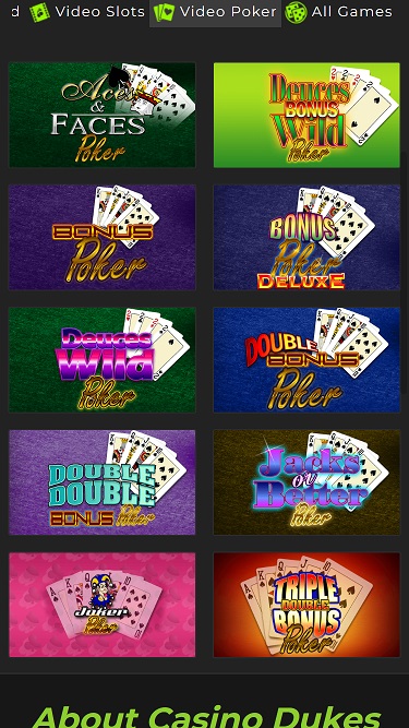 Casino Dukes 也有以下 7種其他的遊戲:
