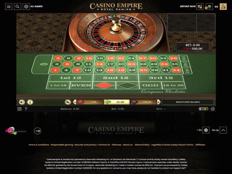 賭場帝國 (Casino Empire) 是一個由 Geomatic Marketing NV 經營的線上博彩網站。該網站採用黑色高端外觀和風格,讓您在網站上測試運氣時感覺自己像個皇室貴族。賭場擁有大量遊戲、卓越的比特幣支援、豐厚的獎金以及真人荷官賭場。所有這些因素都使賭場帝國成為全球玩家的理想選擇。