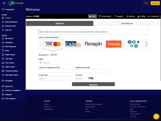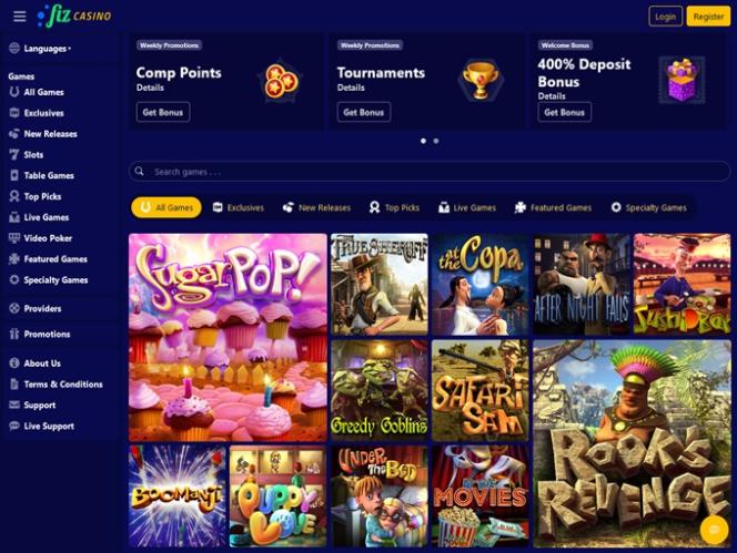 Casino Fiz 是一家線上博彩網站,於 2012 年上線,營運地點位於庫拉索島。賭場採用 Rival Gaming 和 Betsoft 的軟體,為玩家提供豐富的賭場遊戲。儘管遊戲庫龐大,但賭場在顧客中口碑不佳,原因包括拖延支付獎金、拒付獎金以及掠奪性條款。因此,我們不建議您目前在 Casino Fiz 遊戲。賭場資訊