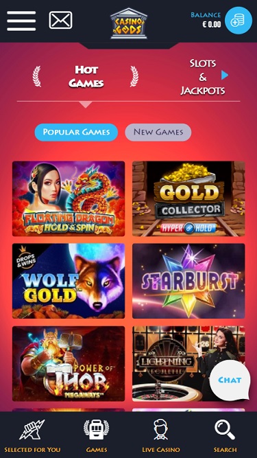 Casino Gods 由 Microgaming, Net Entertainment, Big Time Gaming, Evolution Gaming, Ezugi, iSoftBet, Oryx, Play'n GO, Quickspin, Relax Gaming, Yggdrasil, Wazdan, Pragmatic Play, Red Tiger Gaming, Fantasma Games, Skywind, Gameburger Studios, TrueLab Games, Games Global, NYX Interactive, Push Gaming, Gamomat, Half Pixel Studios, Eurostar Studios and Aurum Signature Studios提供支持,透過基於網頁的即時遊戲平台提供,無需下載任何軟體。頁面將透過瀏覽器加載,所有操作均透過瀏覽器進行。該賭場支援行動端遊戲,如果您願意,可以使用智慧型手機進行博彩。