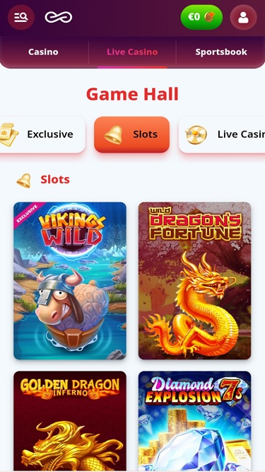 首先,我們想提一下這個網站的外觀,它絕對驚艷。這個線上賭場平台的設計融合了極簡主義風格,並大量使用了亮粉色和紫色。它看起來非常吸引人,令人賞心悅目,這是非常重要的第一印象。