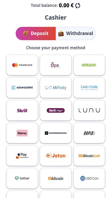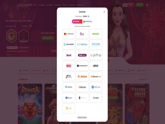 Casino Infinity 為客戶提供豐富的銀行選項。無論您喜歡使用 Visa、 MasterCard 、Neteller 和 Skrill 等熱門支付方式,還是喜歡使用比特幣、萊特幣和以太坊等加密貨幣,都能在這裡找到。