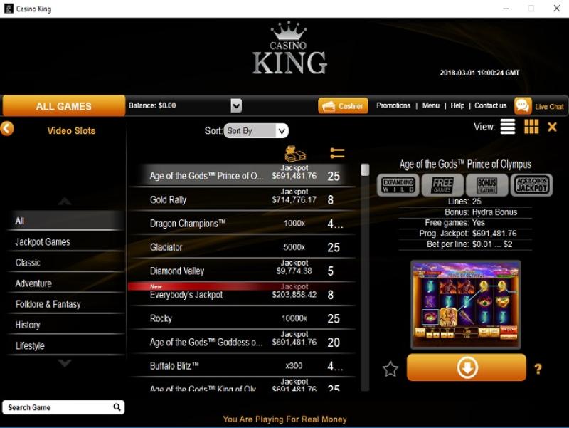 Casino King 採用 Playtech and ProgressPlay軟體,提供下載和即時遊戲兩種遊戲選擇。 Playtech 以其豐富的遊戲選擇而聞名,尤其是老虎機和累積獎金遊戲。