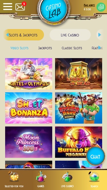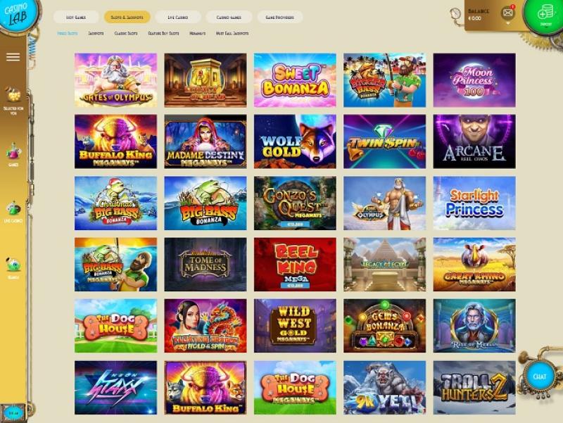 Casino Lab 提供豐富的老虎機遊戲,超過 1,800 款視訊老虎機遊戲,由 Microgaming、Play'n GO、NetEnt、Quickspin 等四十多家遊戲開發商提供。此外,還有累積獎金,絕大多數老虎機遊戲都可以在手機或平板電腦上暢玩。