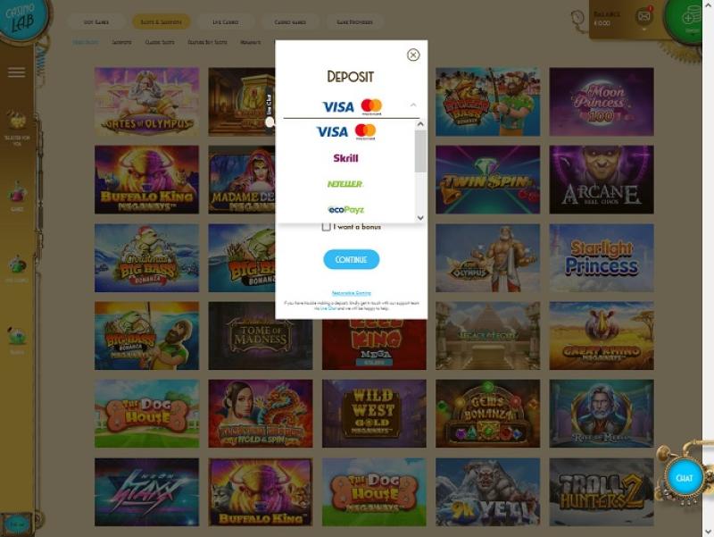 Casino Lab 由 Microgaming, Net Entertainment, Big Time Gaming, Evolution Gaming, Ezugi, Genesis Gaming, iSoftBet, lightningboxgames, Play'n GO, Quickspin, Rabcat, Relax Gaming, Yggdrasil, Wazdan, Red Tiger Gaming, Skillzzgaming, Fantasma Games, Kalamba, Skywind, Triple Edge Studios, Northern Lights Gaming, Stormcraft Studios, Switch Studios, Electric Elephant Games, All41 Studios, Gameburger Studios, Pulse 8 Studios, Neon Valley Studios, Golden Rock Studios, TrueLab Games, SpinPlay Games, Buck Stakes Entertainment, Games Global, 2by2 Gaming, Push Gaming, Cayetano, Gamomat, Old Skool Studios, Foxium, Just For The Win, Slingshot Studios, Golden Hero, Fortune Factory Studios, 4ThePlayer, AvatarUX, Crazy Tooth Studio, Japan Technicals Games, Alchemy Gaming, Plank Gaming, Snowborn Games, Max Win Gaming, Gold Coin Studios, Half Pixel Studios, Eurostar Studios and Aurum Signature Studios提供支持,並透過網頁瀏覽器載入網頁平台提供遊戲。網站設計精良,易於瀏覽。 Casino Lab 還內建行動裝置支持,方便您在智慧型手機或平板電腦上暢玩。