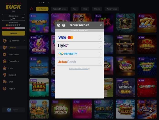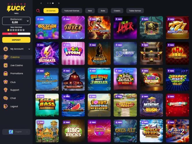 作為多軟體賭場,CasinoLuck 提供來自頂級供應商的各種遊戲,包括 Amaya, Microgaming, Net Entertainment, BetSoft, 1x2gaming, Amatic Industries, Barcrest, Big Time Gaming, Evolution Gaming, EYECON, Ezugi, iSoftBet, lightningboxgames, Oryx, Play'n GO, playson, Quickspin, Yggdrasil, Wazdan, Booming Games, Stakelogic, Pragmatic Play, GAMING1, Red Tiger Gaming, Spinomenal, Red Rake Gaming, Skillzzgaming, SYNOT Games, Skywind, Triple Edge Studios, Northern Lights Gaming, Stormcraft Studios, Switch Studios, All41 Studios, Gluck Games, Gameburger Studios, Pulse 8 Studios, Neon Valley Studios, SpinPlay Games, HungryBear Gaming, Real Dealer Studios, GONG Gaming, On Air Entertainment, Buck Stakes Entertainment, Games Global, Wizard Games, Ainsworth, bluberi, Blueprint Gaming, Endemol Games, NeoGames, NextGen, Pariplay, Tom Horn Gaming, WMS, Inspired Gaming, Gaming Realms, SG Interactive, Gamomat, Scientific Games, Reel Time Gaming, Authentic Gaming, betiXon, Iron Dog Studio, Old Skool Studios, Foxium, Just For The Win, Reflex Gaming, PearFiction Studios, Wild Streak Gaming, Slingshot Studios, Fortune Factory Studios, RubyPlay, 4ThePlayer, AvatarUX, Gamevy, Crazy Tooth Studio, High 5 Games, ReelPlay, Alchemy Gaming, Snowborn Games, Boomerang Studios, Hacksaw Gaming, Bang Bang Games, Slotmill, Lucksome Gaming, Area Vegas, Wishbone Games, HammerTime Games, INO Games, Nailed It! Games, Atomic Slot Lab, Neko Games, Reel Kingdom, Oros Gaming, Indigo Magic and Light & Wonder