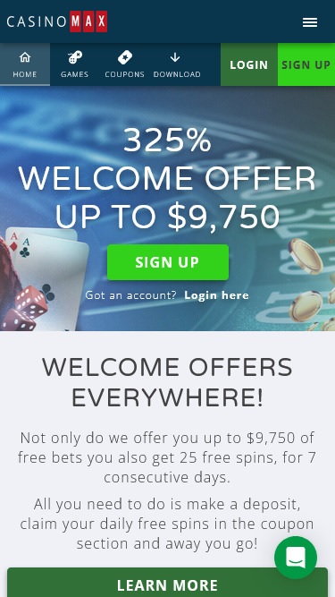 Casino Max 是一個線上博彩網站,於 2017 年上線,由新成立的博彩集團 Legend Affiliates 經營。該網站允許美國玩家使用,並使用 RTG 軟體,這可能會讓您覺得它只是一家普通的博彩公司。但事實並非如此,因為該網站支付速度快、獎金條款優厚,且遊戲庫豐富。
