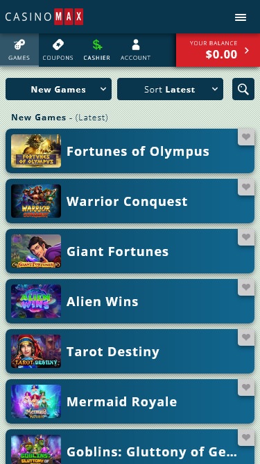 Casino Max 的主打產品是老虎機,擁有超過 150 款遊戲可供選擇。遊戲庫中既有視訊老虎機,也有經典老虎機,玩家還可以嘗試遊戲中提供的眾多累積獎金。此外,Casino Max 還提供行動老虎機,方便您在小螢幕裝置上暢玩。