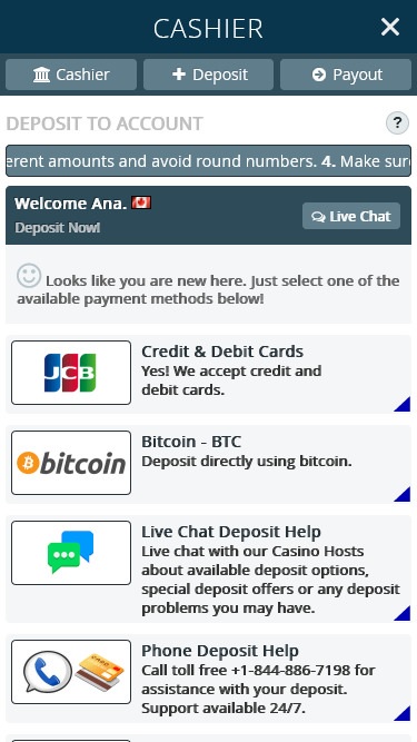這家賭場的銀行系統還不錯,儘管它受到任何對美國友好的賭場都會面臨的限制。存款和提款可以透過電子支票、銀行轉帳、萬事達卡、Visa、Skrill、Neteller 和 ecoPayz 進行。獎金的待處理時間為 24-48 小時,之後的 3-5 個工作天內支付完成。每週獎金提領限額為 4,000 美元。
