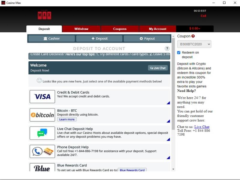 Casino Max 由 Real Time Gaming and Spinlogic Gaming提供支持,其遊戲透過即時遊戲平台提供,可直接透過您的網頁瀏覽器載入。賭場也支援行動遊戲,您可以在智慧型手機或平板電腦上暢玩。需要注意的是,並非所有 RTG 遊戲都支援行動遊戲,儘管自集團首次推出行動管道以來,遊戲選擇已大幅增加。此外,還提供可下載的選項,但我不推薦,因為即時遊戲模式同樣強大。
