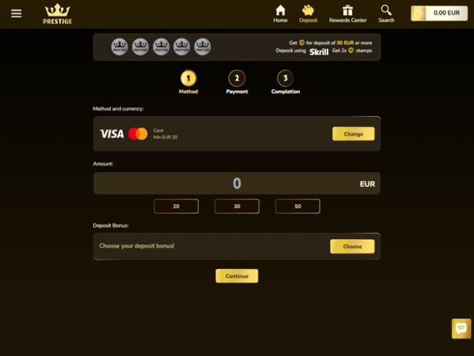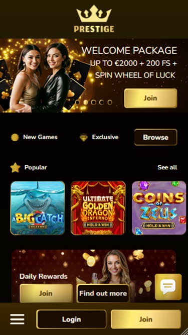 請記住, Prestige Casino 不僅針對桌上型電腦進行了最佳化,也支援行動裝置暢玩賭場遊戲。如果您選擇行動博彩,無論是在手機還是平板電腦上瀏覽和試玩遊戲,都能獲得與在大螢幕上相同愉悅的體驗。此外,賭場網站提供英語、義大利語、法語、波蘭語和德語版本,這對國際玩家來說非常方便,能夠幫助他們更快、更流暢地瀏覽網站。