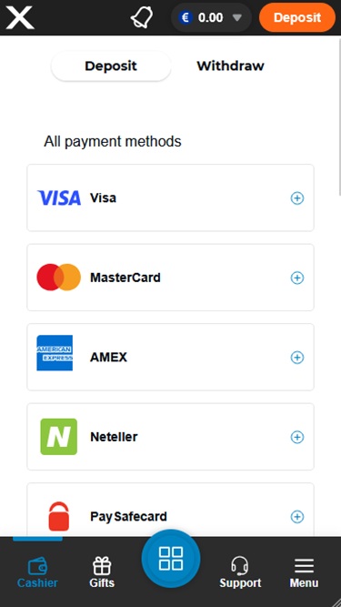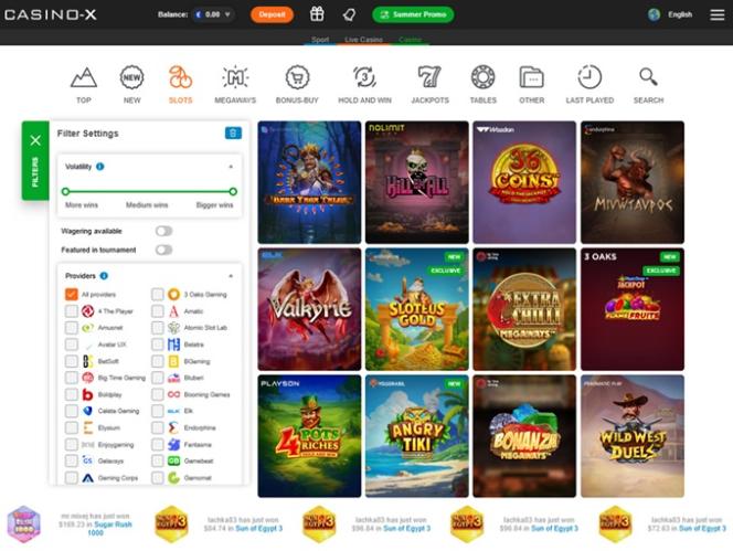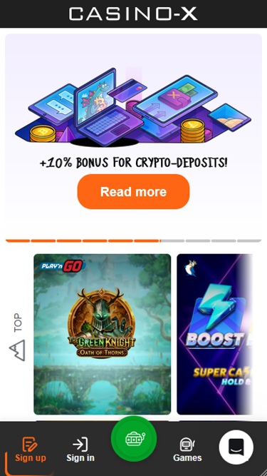 Casino-X 由 Microgaming, Net Entertainment, Playtech, BetSoft, 1x2gaming, Big Time Gaming, ELK Studios, Evolution Gaming, Genesis Gaming, Habanero Systems, iSoftBet, lightningboxgames, Play'n GO, playson, Quickspin, Rabcat, Relax Gaming, Thunderkick, Yggdrasil, Endorphina, Wazdan, Realistic Games, Booming Games, Pragmatic Play, Nolimit City, Felt Gaming, Red Tiger Gaming, Booongo, Spinomenal, Red Rake Gaming, Skillzzgaming, Fantasma Games, Kalamba, Skywind, Triple Edge Studios, BGAMING, Northern Lights Gaming, Stormcraft Studios, Switch Studios, OneTouch, Electric Elephant Games, Pocket Games Soft, Bulletproof Games, All41 Studios, Gluck Games, Mascot Gaming, Gameburger Studios, Pulse 8 Studios, Slot Factory, Neon Valley Studios, Golden Rock Studios, Radi8 Games, Swintt, Woohoo Games, SpinPlay Games, Qora Games, Real Dealer Studios, GONG Gaming, Blue Guru Games, Lady Luck Games, Buck Stakes Entertainment, Elysium Studios, Games Global, 2by2 Gaming, Ainsworth, Ash Gaming, Blueprint Gaming, Igrosoft, Push Gaming, Tom Horn Gaming, Reel Time Gaming, Iron Dog Studio, Old Skool Studios, Foxium, Just For The Win, Reflex Gaming, Storm Gaming Technology, PearFiction Studios, Wild Streak Gaming, Slingshot Studios, Fortune Factory Studios, Jade Rabbit Gaming, STHLM Gaming, RubyPlay, 4ThePlayer, AvatarUX, Gamevy, Crazy Tooth Studio, High 5 Games, ReelPlay, Alchemy Gaming, Rarestone Gaming, Plank Gaming, Black Pudding Games, Snowborn Games, Boomerang Studios, Hacksaw Gaming, Max Win Gaming, Bang Bang Games, Gamzix, Half Pixel Studios, SilverBack Gaming, Peter And Sons, Eurostar Studios, Aurum Signature Studios, Gamebeat, Area Vegas, Bombay Live, Aviatrix and 3 Oaks Gaming提供支持,其遊戲透過網頁平台提供。此外,也為希望透過智慧型手機和平板電腦玩遊戲的用戶提供行動網站。