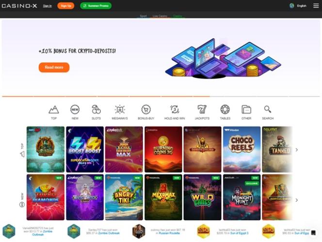Casino-X 提供數百台視訊老虎機,以及豐富的經典遊戲選擇。賭場也為玩家提供累積獎金,隨時都有數百萬美元的獎金等著贏取。