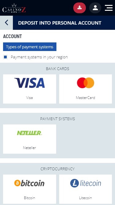 下面您將看到 Casino-Z 的不同銀行業務選項,包括存款和提款選擇。