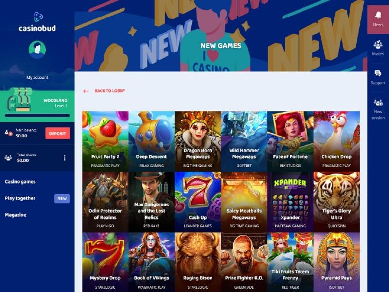 Casinobud 與 20 多家軟體開發商合作,為各種類型的玩家提供合適的遊戲。建議的提供者包括 Net Entertainment, 1x2gaming, Big Time Gaming, ELK Studios, Evolution Gaming, iSoftBet, Play'n GO, playson, Quickspin, Relax Gaming, Wazdan, Stakelogic, Pragmatic Play, Nolimit City, Red Tiger Gaming, Red Rake Gaming, Kalamba, Pocket Games Soft, Leander Games, Push Gaming, Gamomat, Iron Dog Studio, Wild Streak Gaming, Green Jade Games and Hacksaw Gaming 。