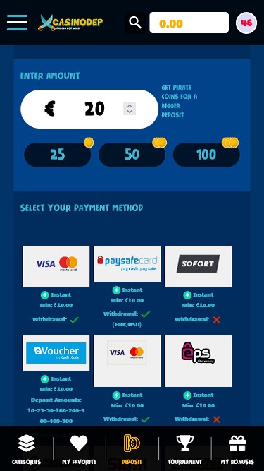 至於客服,您可以透過電子郵件、聊天或他們的訊息系統輕鬆聯繫CasinoDep的客服代表。根據我們的經驗,他們的回覆非常迅速,而且非常樂於助人。這對我們來說是一大優勢。